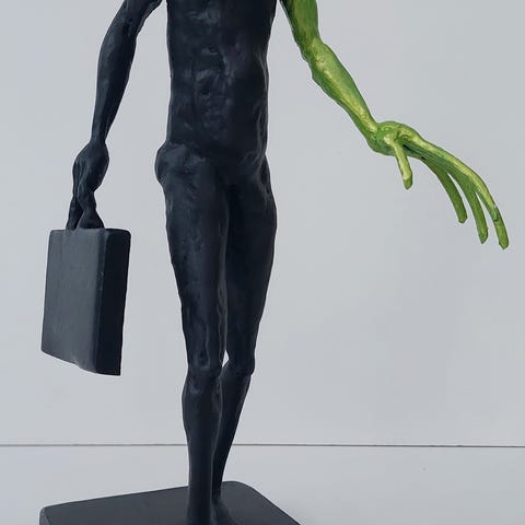 Bronsefigur som forestiller Heimdal. Figuren er detaljert med vikingens rustning og et dyr ved foten. Passer til dekorasjon eller samling. Vekt ca 1 kg.