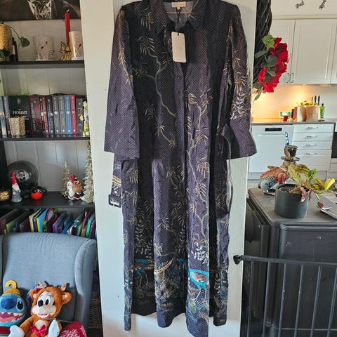 Helt ny ByTimo Satin Button Down Dress i printet Midnight Birds 🐦 Den er helt nydelig og i blankt satengstoff med et vakkert print med blomster og og fugler. Den satt ikke helt som jeg hadde tenkt på meg så jeg selger den videre, i håp om at noen andre får bruk for den. 🐦