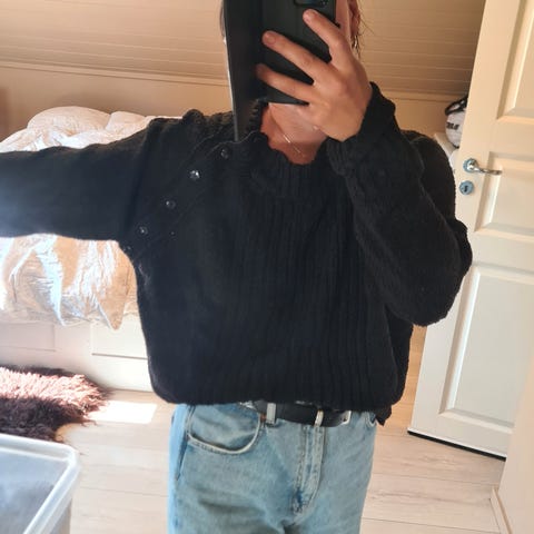 Selger utrolig fin hjemmestrikket kortermet genser med vakre detaljer på armene. Selges da jeg bommet på str da jeg strikket den.