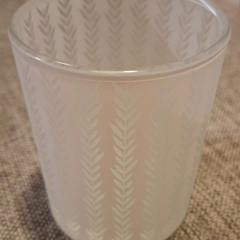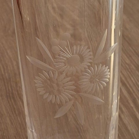 Søkeord glass vase beger drikkeglass slipet frosted blomster dekor telysholder lysestake liten vase vintage retro klarglass interiør pynt borddekking
