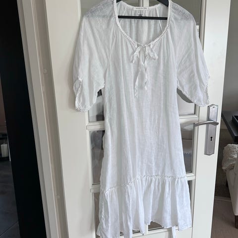 100 % lin, med vakre broderte detaljer og dekorative knapper.