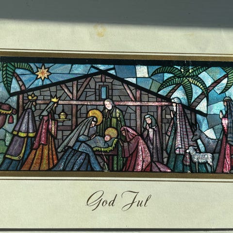 Lite lerretsbilde – engler i verdensrommet – ca. 20 × 24 cm