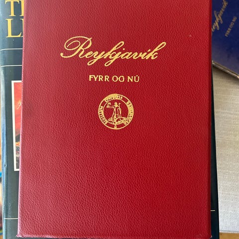 Reykjavík Fyrr og Nú bok med tekst på islandsk. Inneholder historisk innhold og illustrasjoner. Boken har tødinnbinding med gulltrykk på omslaget.