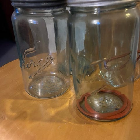 Selger to stk Norgesglass da de ikke blir brukt og pga plassmangel. En med skrulokk og den andre med hempe.