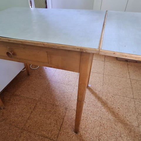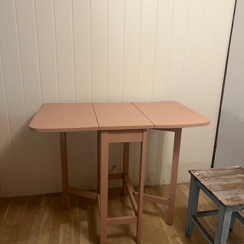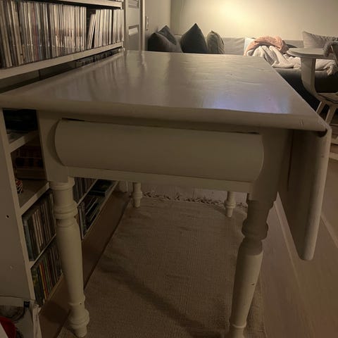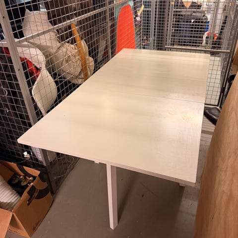 Bord med klaffer og skuff fra IKEA. Har blitt brukt til pult og skrivebord på barnerom. Sjekk bilde 2 for mål.