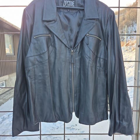 Pent brukt skinnjakke med ullfor selges. Kan lukkes med både glidelås og knapper foran. Hals som kan kneppes igjen. Kjøpt brukt for ca. to år siden. Noe slitasje, se bilder. Størrelse 54, men passer også mindre for en oversized look. Noe kort ermer.