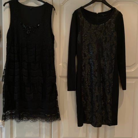 Donna festkjole i størrelse M, svart farge, dekorert med paljetter.