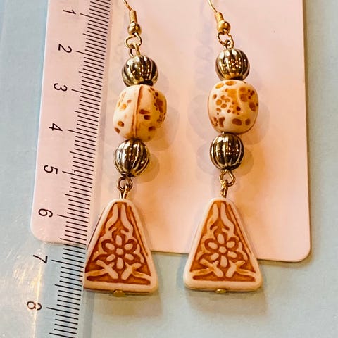 Pent brukte, sølvfargede hengeøredobber med strass.
