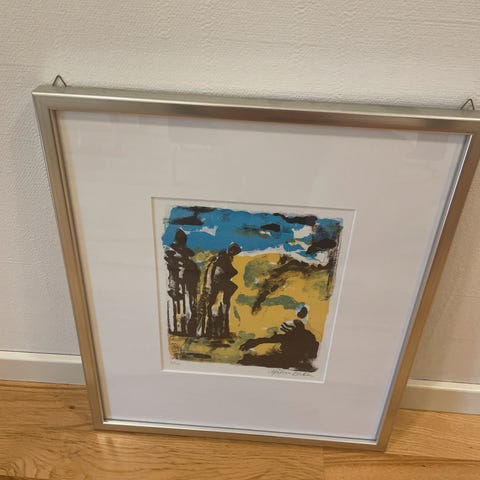 Silketrykk laget for VM ski junior 1983, signert og nummerert 147 av 150. Verket er innrammet med rammer fra galleri Ismene