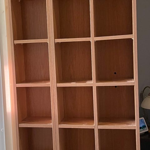 Billy bokhylle fra IKEA gis bort. Hyllen er av eldre type, men er fullt brukbar. Noe bruksmerker, samt at platen på baksiden kunne trengt en spiker eller to. Den har dog gulnet noe i farge.