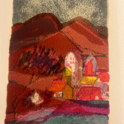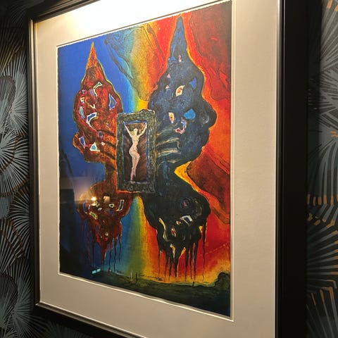 Signert litografi kunsttrykk med nummer 102 av 160. Trykket viser et fint motiv med blå, hvite og gule farger. Kunstverket er innrammet med rammer fra galleri Ismene.