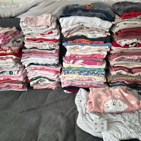 Stor babypakke - vognposer, dundyner, ullklær, to dresser
