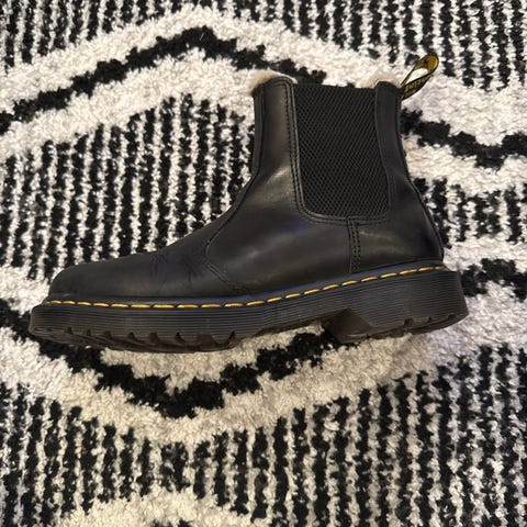Semsket ankelstøvlett med ullfor: olivengarget Lite brukt. Ny pris 2000.- Nå: 550.- God på foten- tykk såle