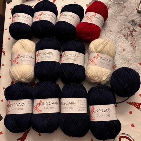 118 hele og noen halve nøster selges samlet 3300,- (28,- per nøste!)