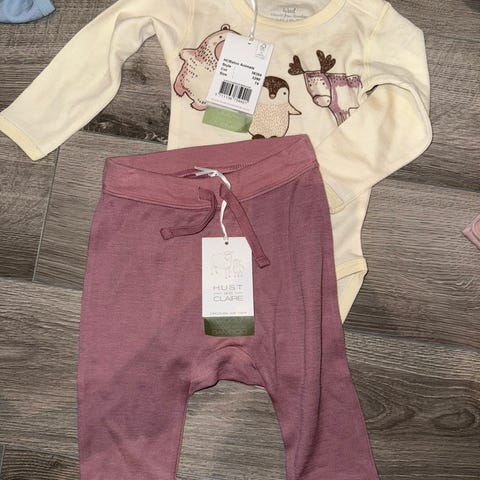 Hust & Claire ull barneklær i størrelse 74. Laget av ullmateriale som gir varme og komfort.