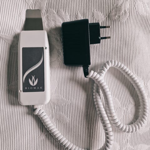 Dermapen Home microneedling enhet for hudbehandling. Enheten er designet for hjemmebruk og leveres med tilbehør som nålepatroner. Brukes for å forbedre hudens tekstur og utseende.