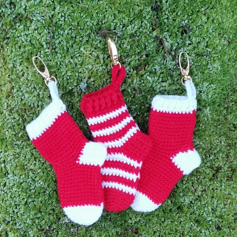 Håndlagde julestrømper heklet i et solid akrylgarn for å vare. Heklet i en teknikk som gjør de elastiske nok til å få plass til mye samtidig som de holder innholdet inni strømpen. Ca. 40 cm lang.