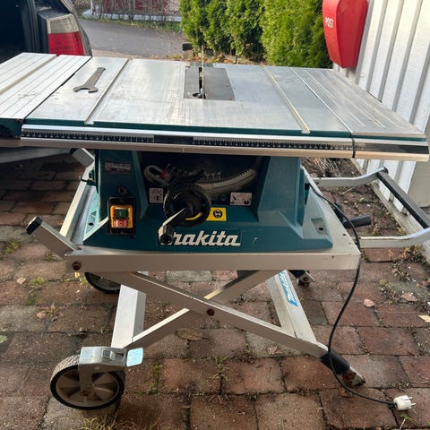 Solid bordsirkelsag, Makita 2704, 1650 w, som er pent brukt. Den har stått tørt og godt inne og er brukt til hobby prosjekter. Ø260mm sagblad. Leveres med sagblad, sideanlegg og skyvestav.