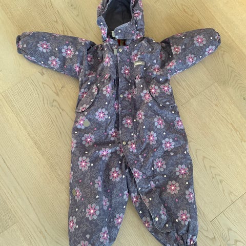 Pent brukt Polarn O. Pyret skallheldress i mørk blå. Vind- og vanntett dress med god kvalitet og slitestyrke. Praktisk hette, refleksdetaljer og fotstrikker. Perfekt som ytterdress til barnehage, skole og aktiv lek i all slags vær.