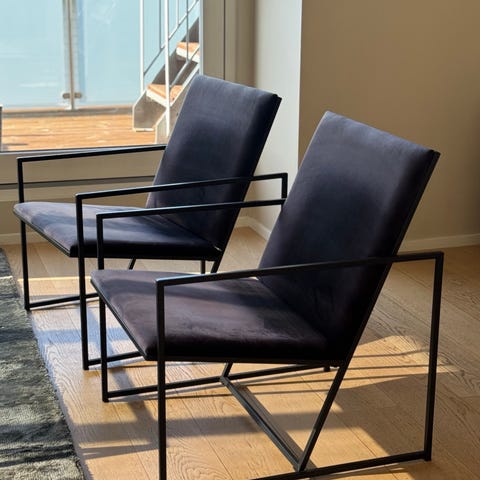 Selger 2 mørkegrå flotte nette og gode velour lenestoler med sølv nagler og flotte løve føtter. Lenestolene fremstår som pene men er på noen steder godt brukt. Ikke nedsittet eller skadet men kun noe farge forskjell på arm lenene som sikkert går å fikse på med tekstil spray farge. Dette er ikke så synlig. Samt noen løse tråder i bakkant som kan kuttes bort med nuppe maskin (av katt)