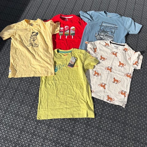 3 t-skjorter og en romper/nattpysj.