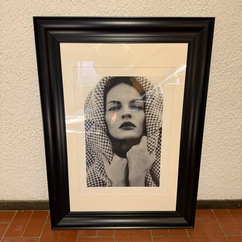 Bilde selges. 80 x 120 cm. Ett lite hakk bak på ramma. Ellers helt og fint. Må hentes.