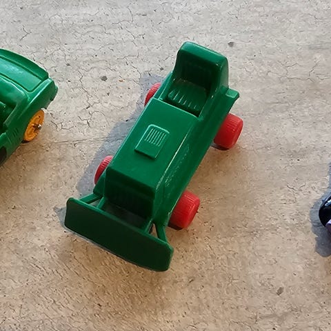 Dette er en gul minibil fra Green Toys. Laget i USA av 100% resirkulerte melkekanner av plast, noe som sparer energi og reduserer utslipp av klimagasser. Inneholder ikke BPA, ftalater, PVC eller utvendige belegg, noe som gjør den trygg for barn. Har et superøko-design uten metallaksler eller små deler, egnet for innendørs og utendørs lek. Måler omtrent 10 cm lang. Tåler oppvaskmaskin for enkel rengjøring.