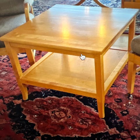Superfint bord, ikke for stort, ikke for lite. Fin høyde for å nyte fredagstaco forran tv'n. Ikke mange merker, ganske strøkent. Fin patina.