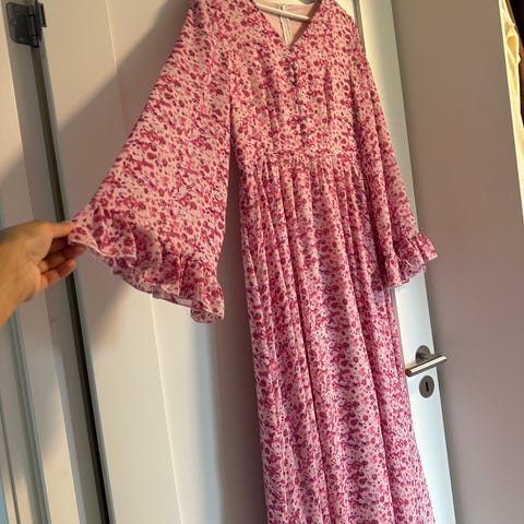 Pent brukt maxi kjole. Fint mønster med glitter detaljer. Passer både til fest og hverdag. Nyttår eller jul