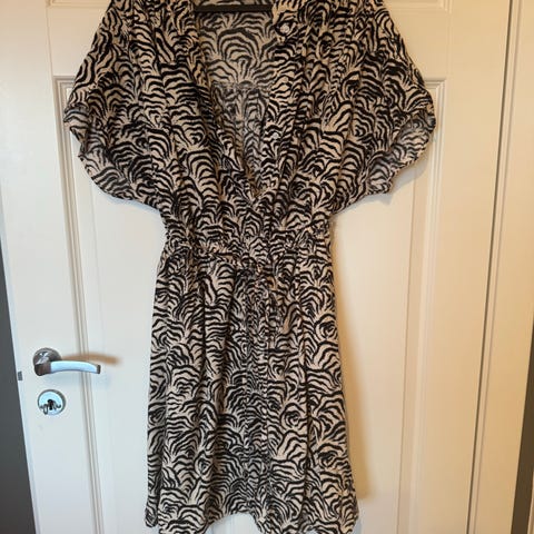 H&M Hverdagskjole i størrelse XS, svart farge og laget av polyester. Kjolen har et mønster i svart og hvitt og er designet for kvinner.