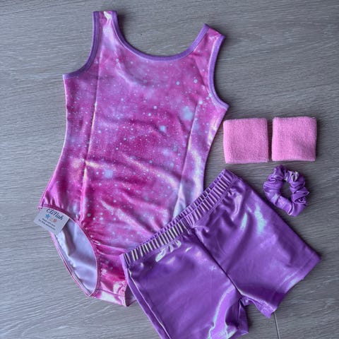 Selger et helt nytt sett bestÄende av drakt, shorts og hÄrstrikk .
