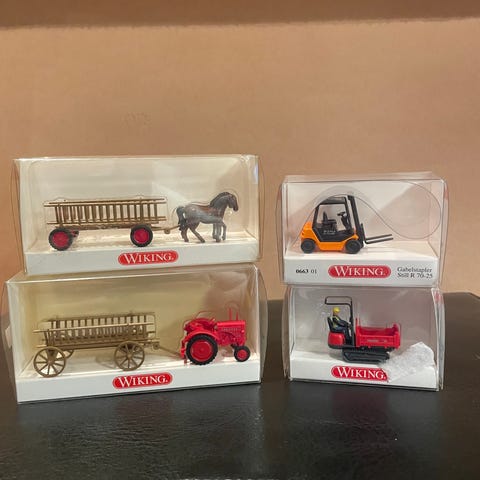 Wiking MB Straßenkehrfahrzeug modell TSZ-Silent i oransje farge. Modell av et stille feiebil laget av plast. Detaljert miniatyr av et kommunalt kjøretøy for rengjøring av gater.