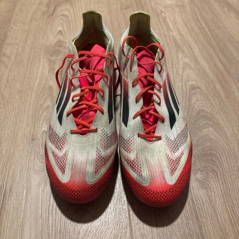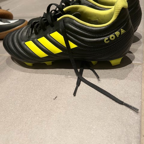 Adidas Copa fotballsko i hvit og rød farge med FG knotter. Er toppmodellen og str: 41 1/3. Veldig god tilstand da de kun er brukt en gang.