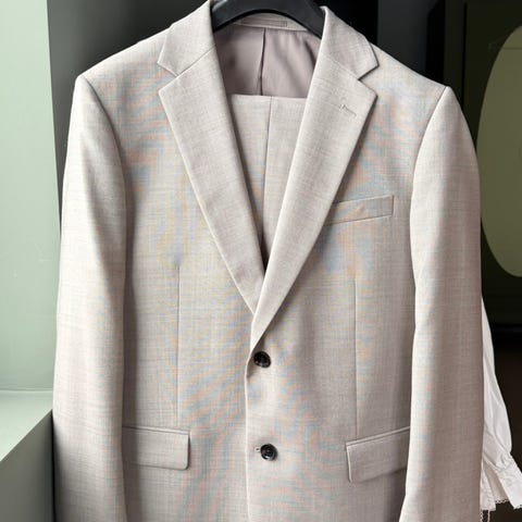 Selger herredress i beige farge, moderne og stilren. Passer godt til både formelle anledninger og hverdagsbruk.