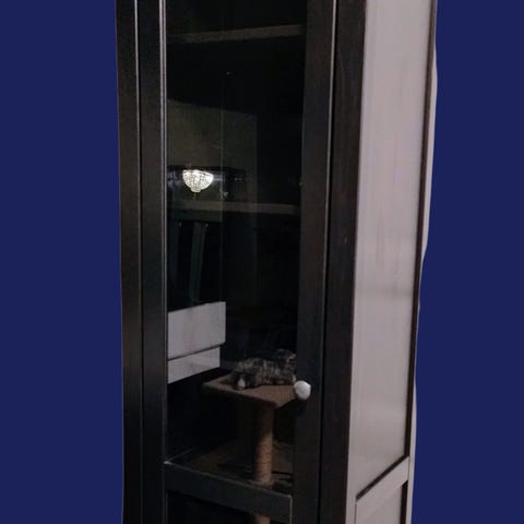 Skapet er pent brukt. Kan legges ting som dekorasjon. Tingene i skapet føles IKKE med.