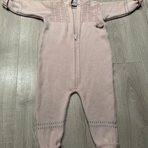 Lillelam Ull Heldress i størrelse 86. Dressen er laget av ull og er gammelrosa. Den har glidelås foran og er god og varm.