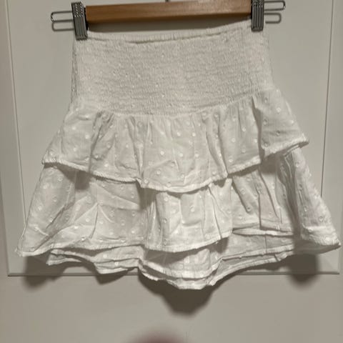 Hvit kjole str 50, knapper bak på ryggen som du ser på bilde 2 . Bilde 3 er det som er under kjolen nedentil.