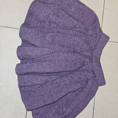 Hånd strikket krone strikket I merino med broderi og myk deilig pjuske kant