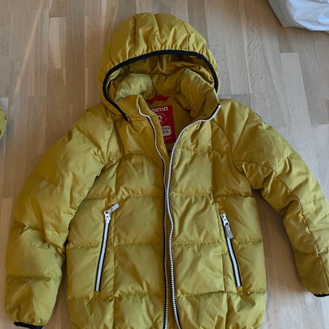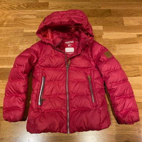 Reima barnejakke i størrelse 128 for jenter, grønn.Den har glidelåslommer og hette med fuskepelskant. Jakken er designet for å gi varme og komfort til barn.