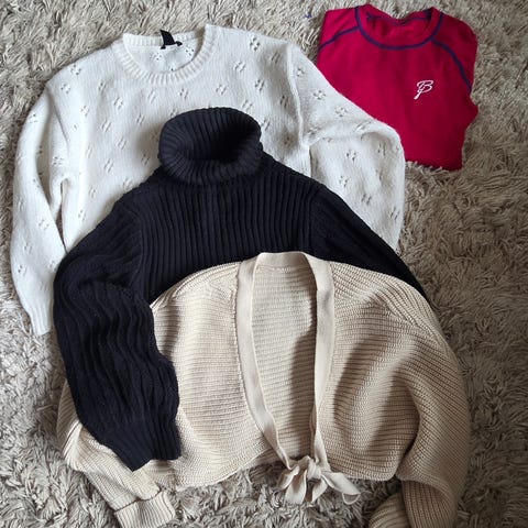 Det meste er pent brukt, 2 av genserene er litt nuppete etter vask