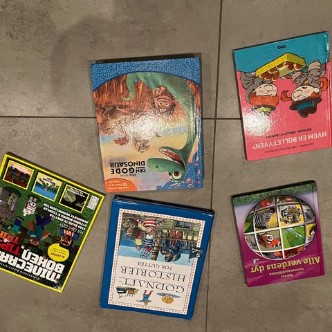 Barnebøker, til alder 1 år til 7 år selges. 2 kasser. Julepresanger?