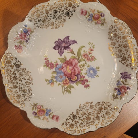 Søkeord bavaria germany serveringsfat kakefat gull dekor gullkant porselen tysk porselen vintage retro mandala mønster middagsselskap kaffebord dekorasjon kakedisk samleobjekt germany plate