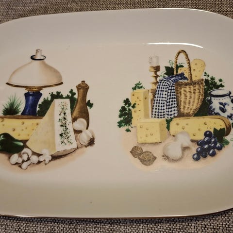 Stemplet «Bavaria Germany» under, diameter ca. 27 cm (se bilde med målebånd), perfekt som kakefat, serveringsfat eller dekor på spisebord og skjenk.