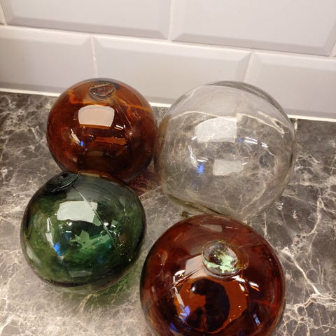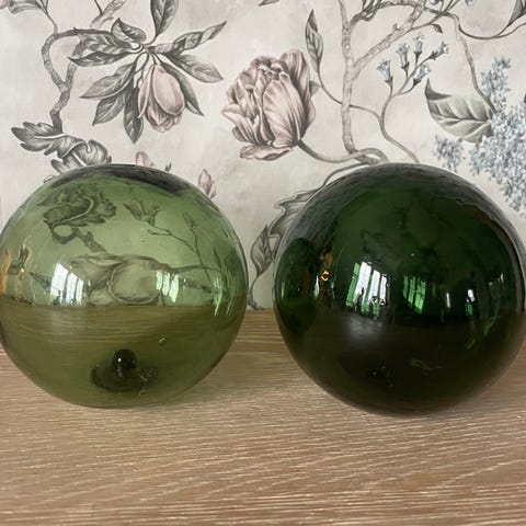 To gamle garnkuler med ødelagt nett. Diameter ca 13 og 15cm. Selve kulene er fine. Pris er samlet. Billigste porto blir 69kr med Postnord utenom fiksferdig.