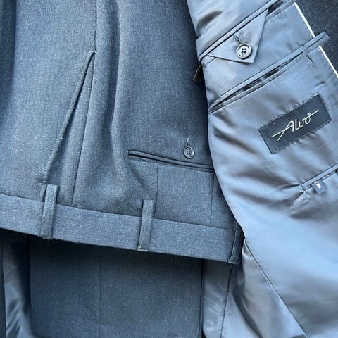 Atvo Dress i størrelse L, farge svart. Jakken har detaljer som Super 100's stoffkvalitet og er produsert i Kina. Materialet er ikke spesifisert, men jakken har foret innside med lommer og knappelukking.