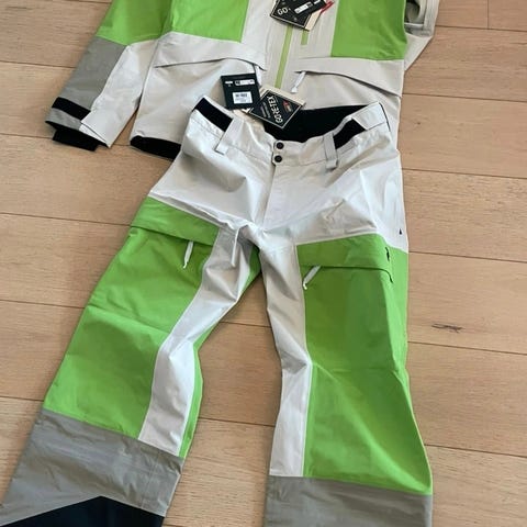Grågrønn skibukse fra Peak Performance selges. Noe bruksslitasje som fremkommer av bildene.