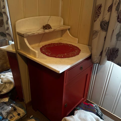 Sjarmerende vaskekommode med mye patina og marmortopp
