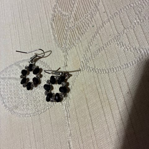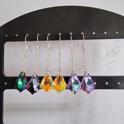 Nye og ubrukte! Blå nydelig dyp farget krystall øäredobber som henger, Gull detalj og krystall gem stones. Plast, som er allergi vennlig, og tåler vann! Kjempe fine. Håndlaget/ Design.