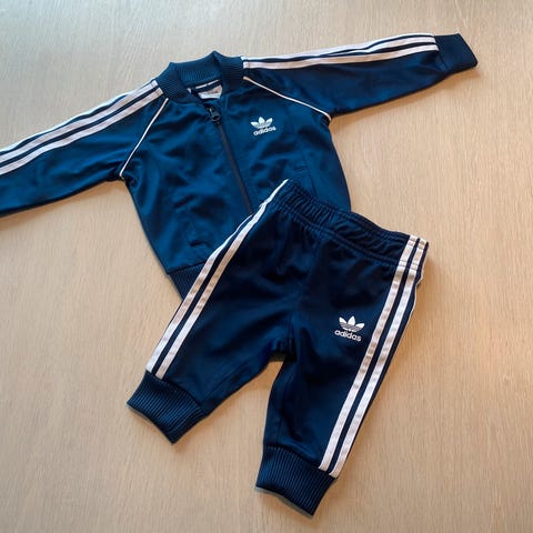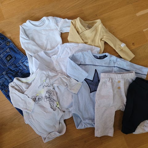 Klespakke baby selges. Ett sett Adidas joggedress, Nike joggedress, søtt Disney sett, fotballdrakt sett, sett med jeans, body og bamseøre jakke fra primark i str 68. Veldig lite brukt - ingen skader eller slitasje