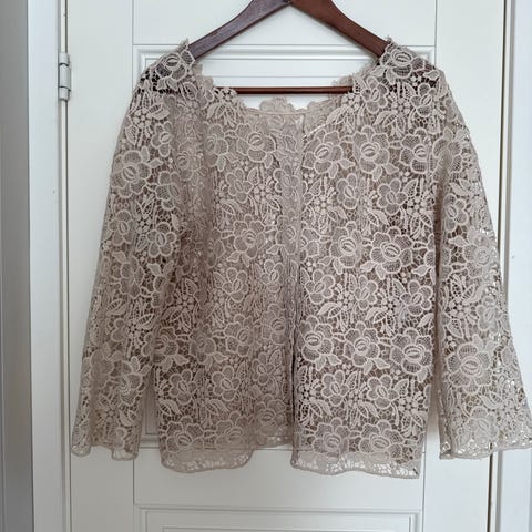 Bluse i blonder kjøpt på lagersalget deres.